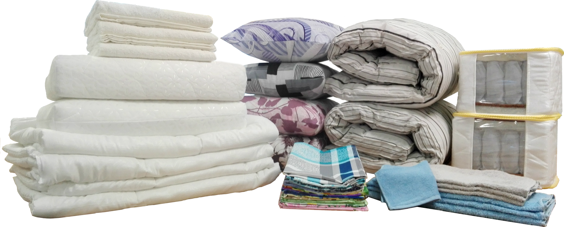 Мы выпускаем все виды постельных принадлежностей, что позволяет нашим покупателям комплексно снабдить дом, организацию или магазин всем необходимым. Принимаем заказа от организаций и частных лиц на самые разные, стандартные и нестандартные, размеры, соблюдаем ГОСТы, тщательно следим за качеством.